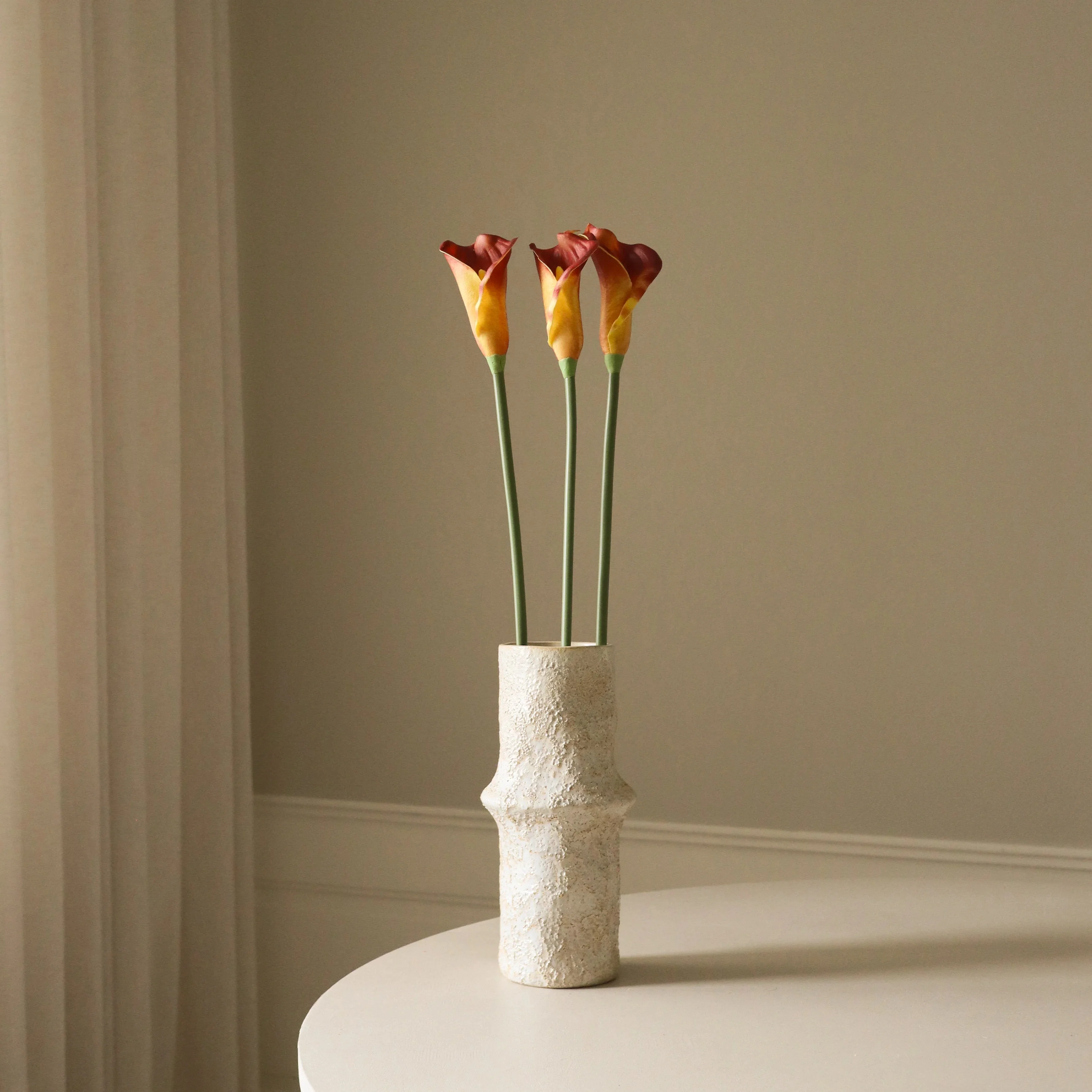 The Ceramic Earth Vase featured in the image measures 30.5 cm in height and 10 cm in diameter.