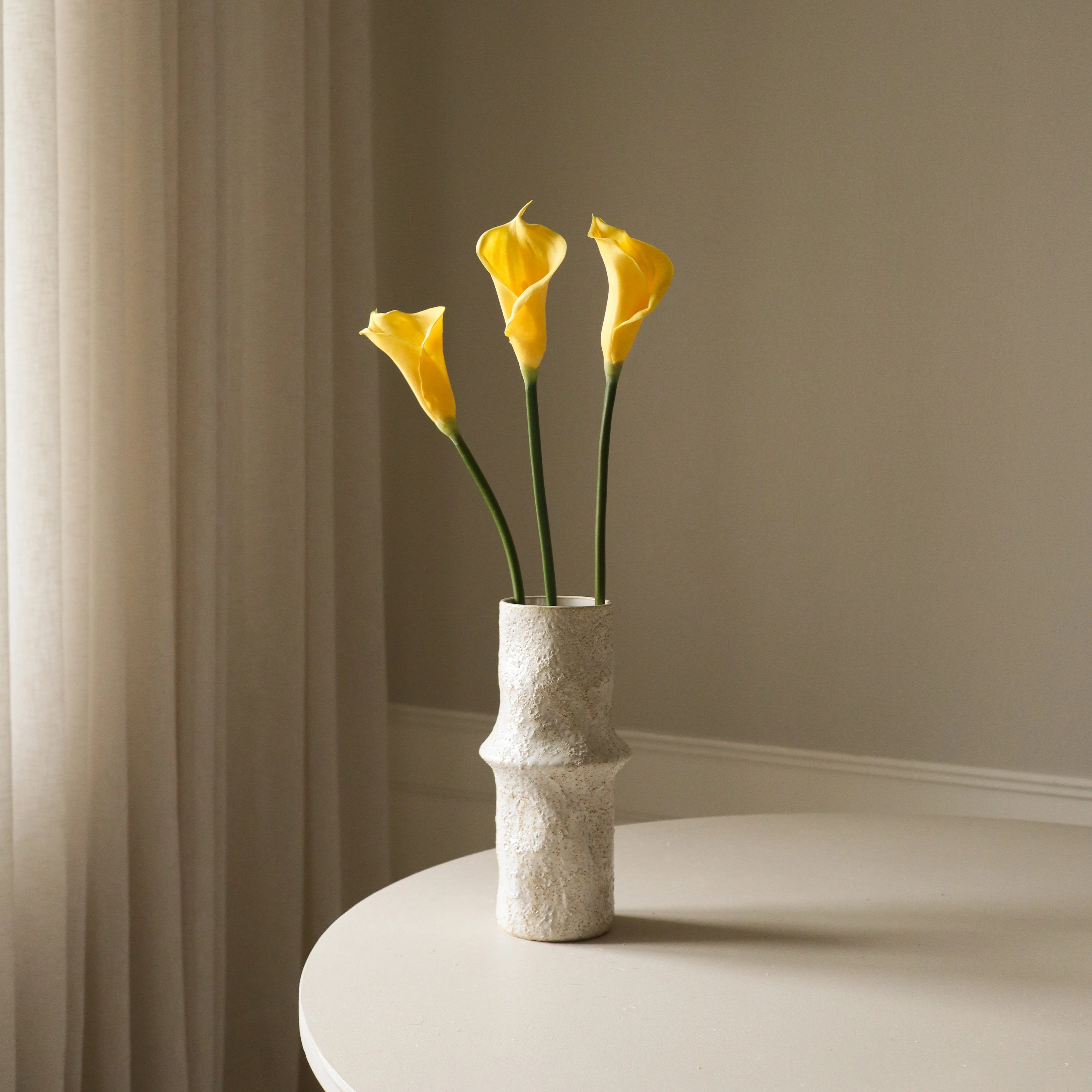 The Ceramic Earth Vase featured in the image measures 30.5 cm in height and 10 cm in diameter.